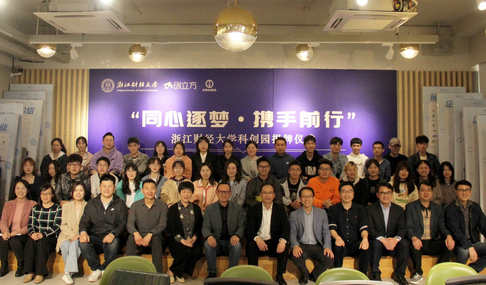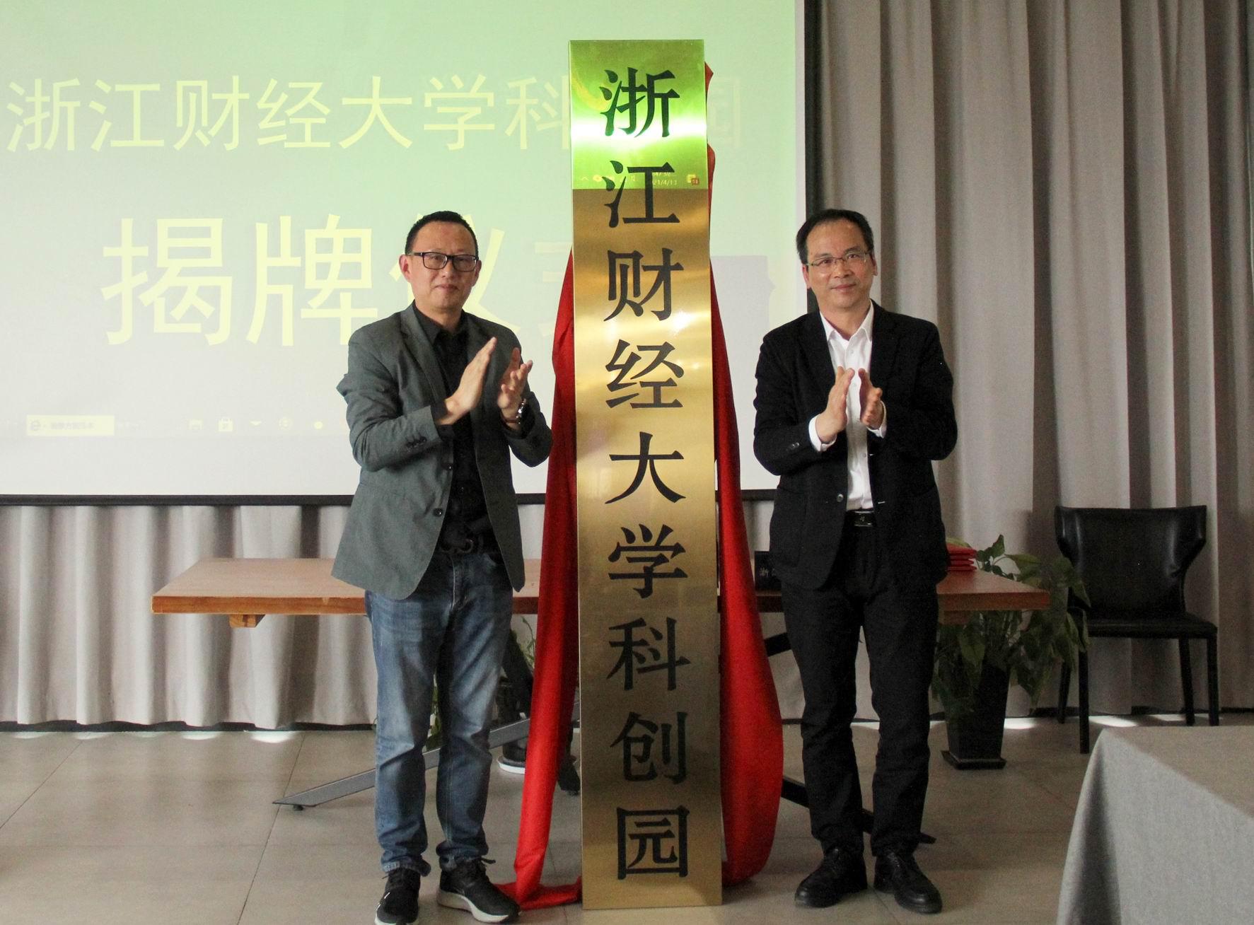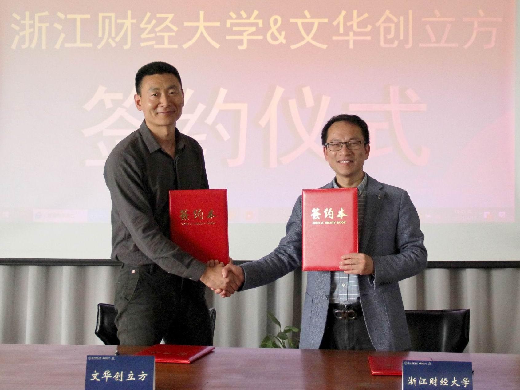 学校与文华创立方科技有限公司签订了科创园战略合作协议,余建森与卢建国共同为浙江财经大学科创园揭牌。