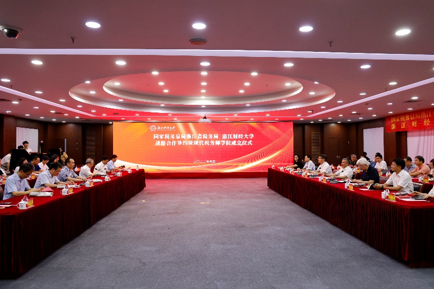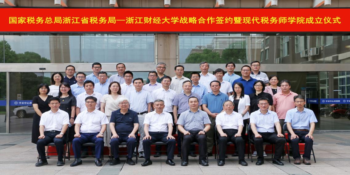 本网讯 6月29日,学校与国家税务总局浙江省税务局举行战略合作签约暨现代税务师学院成立仪式。校党委书记李金昌,党委副书记、校长钟晓敏,党委委员、副校长徐晓东、董进才,国家税务总局浙江省税务局党委书记龙岳辉,党委委员王黎明,浙江省注册税务师协会会长邢幼平等出席仪式。仪式由徐晓东主持。