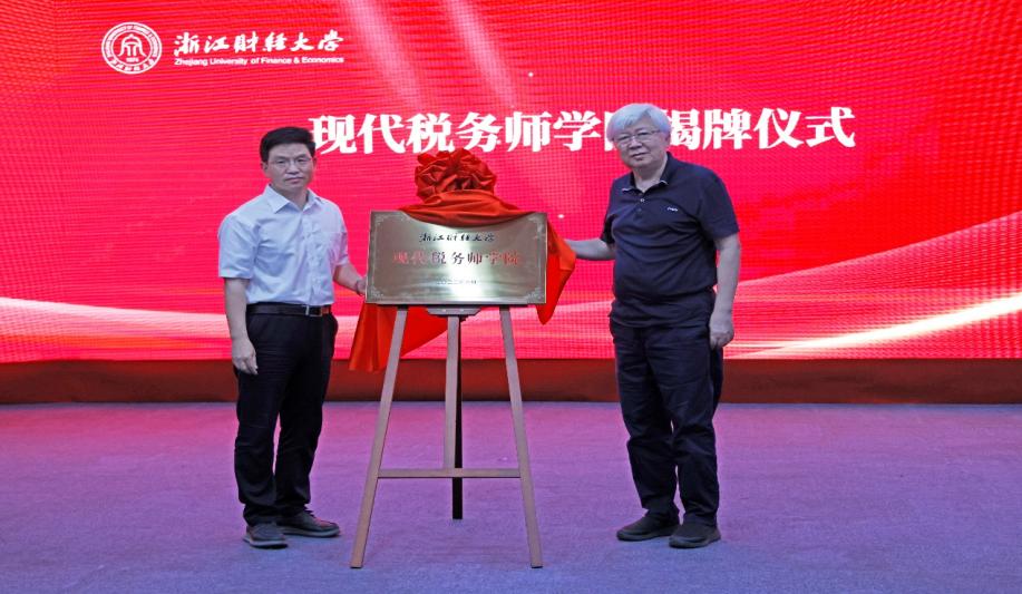 董进才宣读关于现代税务师学院成立的文件。董进才和邢幼平共同为“现代税务师学院”揭牌。