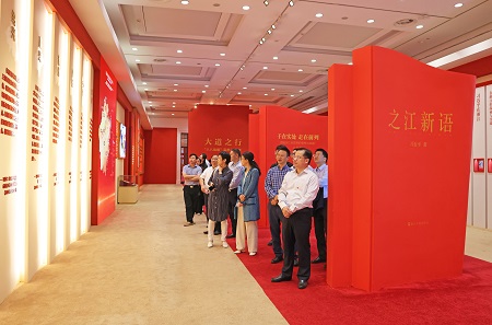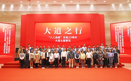 本网讯10月19日,学校组织参观“大道之行——‘八八战略’实施20周年大型主题展览”,校党委书记李金昌,党委副书记、副校长(主持行政工作)魏江,党委委员,组织部、宣传部、统战部部长楼胆群,机关各支部书记、部门负责人,浙江省“八八战略”研究院研究员,各单位宣传联络员80余人参观。