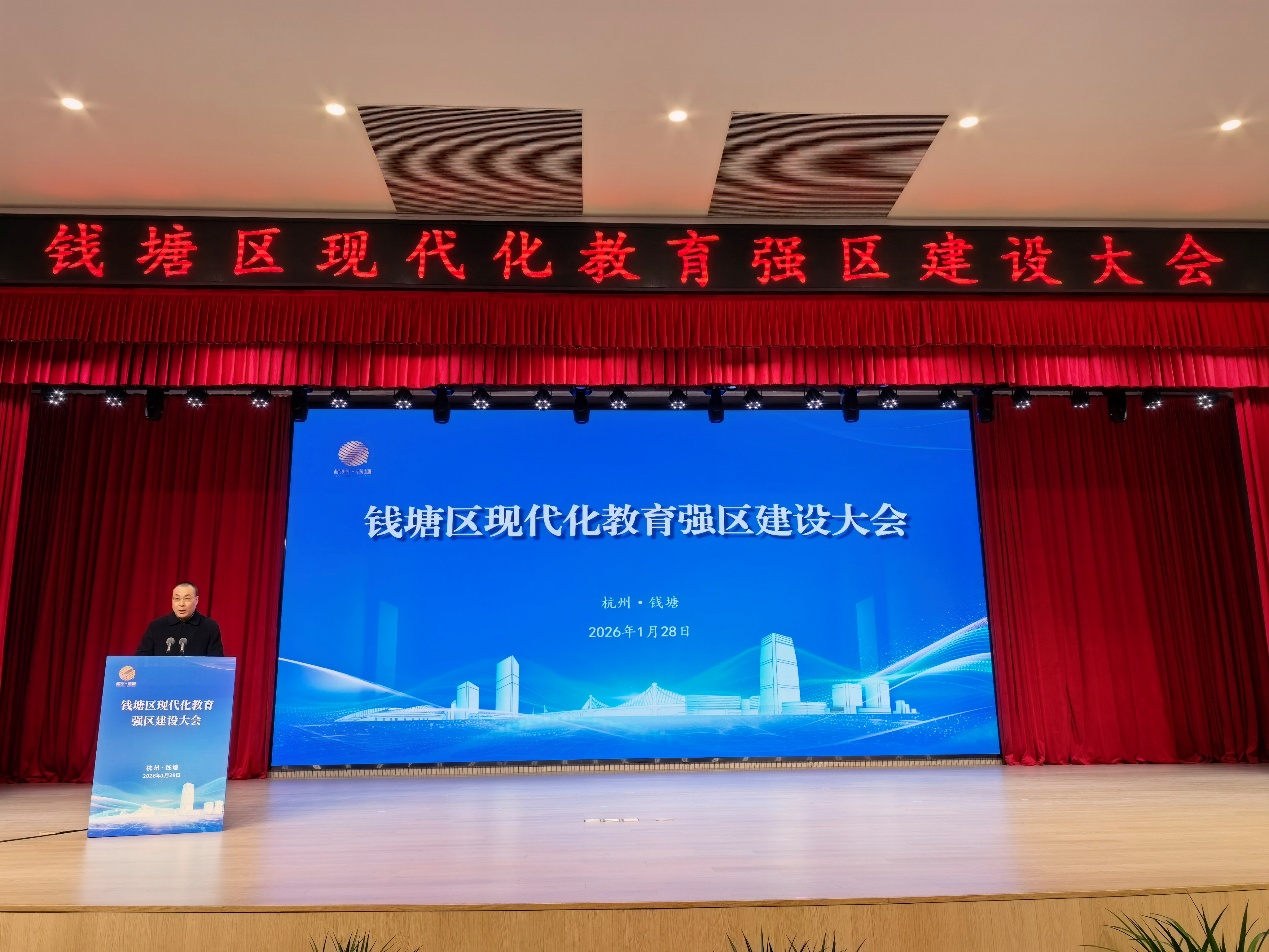 1月28日,钱塘区现代化教育强区建设大会隆重召开,省委教育工委委员、省教育厅党组成员、副厅长舒培冬,新区党工委书记、区委书记沈燕俊等领导出席会议。学校李金昌受邀参会并作为智库专家代表发言。学校相关负责人参与高校附属学校名誉校长聘任仪式。